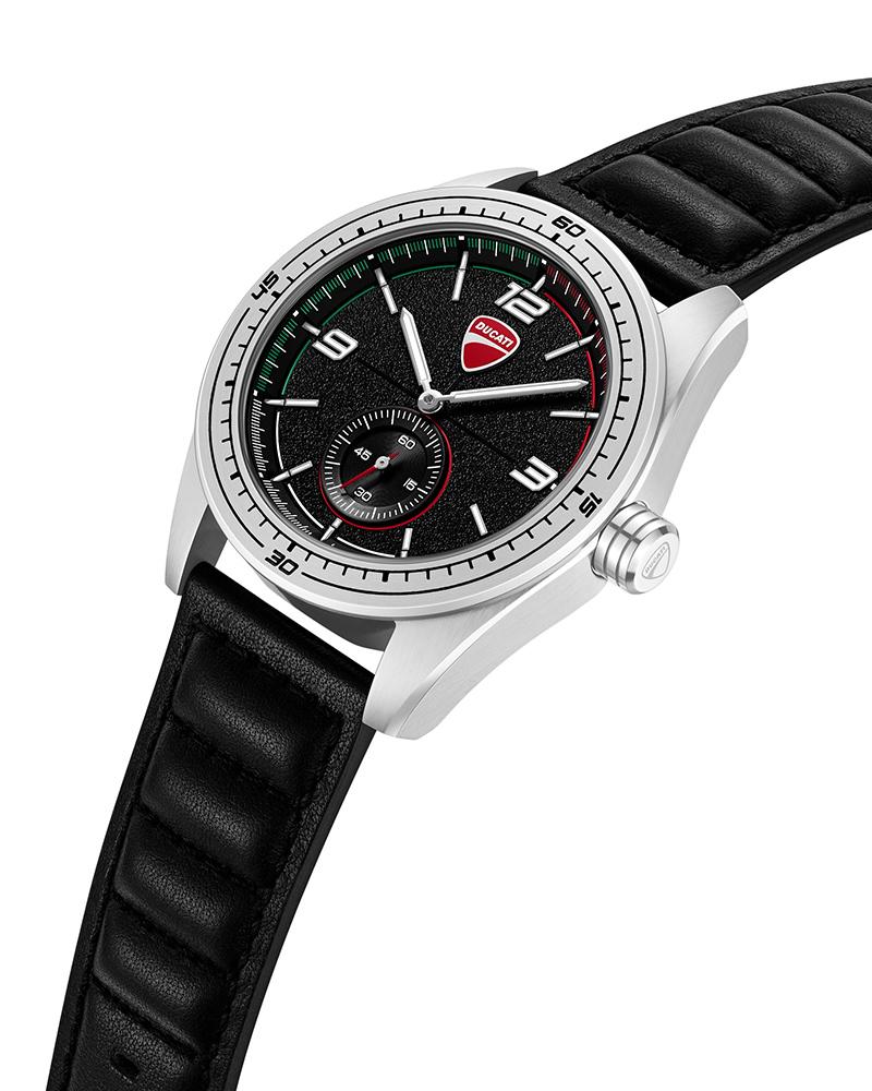 The DT018 is all about functional clarity – its black grainy dial mirrors bitumen textures, while seconds sub-dial borrows from the layout of a speedometer – quick to read, ready at a glance. Housed in a brushed and polished stainless-steel case, it’s fitted with both a black leather and silicone strap – adaptable, durable, and always ready to go the distance. A touring companion, reimagined for the wrist.